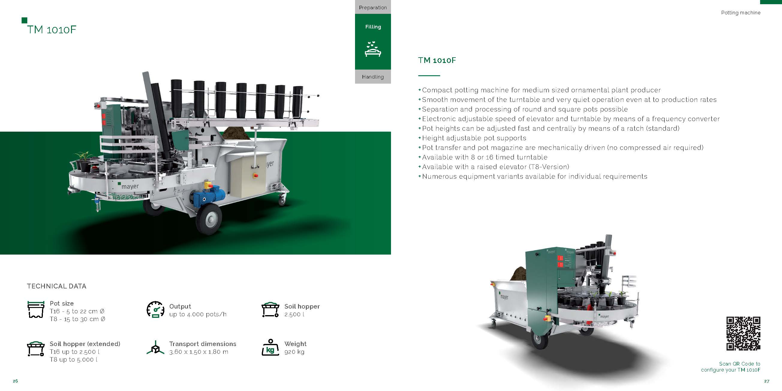 TM 1010 F上盆機(jī)的生產(chǎn)效率提高的同時,操作和控制也非常方便。例如,轉(zhuǎn)盤中央快速調(diào)節(jié)的設(shè)計使換盆架更換不同直徑花盆的調(diào)整時間大大縮減。轉(zhuǎn)盤和鏈?zhǔn)缴禉C(jī)的電子頻率控制確保功率調(diào)節(jié)的精確性,并且通過工作區(qū)域的控制面板控制,操作簡單。也可以附加用于控制基質(zhì)輸送、鉆孔電機(jī)和傳送帶的變頻器,需額外費(fèi)用。(圖片包含額外的設(shè)備)。