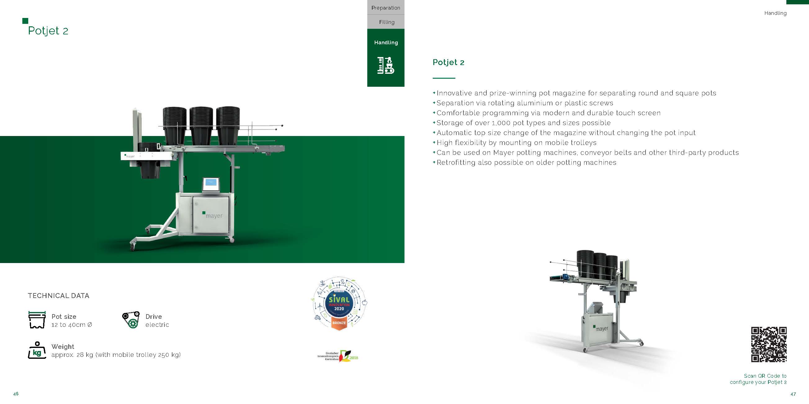 創(chuàng)新的螺旋式上盆單元Potjet 2在上盆方式上樹立了新的標準。憑借由聯(lián)邦糧食和農業(yè)部(BMEL)頒發(fā)的“ 2018年德國園藝創(chuàng)新獎”以及“ 2020年創(chuàng)新銅獎”,我們的花盆設備以其特殊的質量,實用性,對用戶的益處及其創(chuàng)新性而獲得認可。