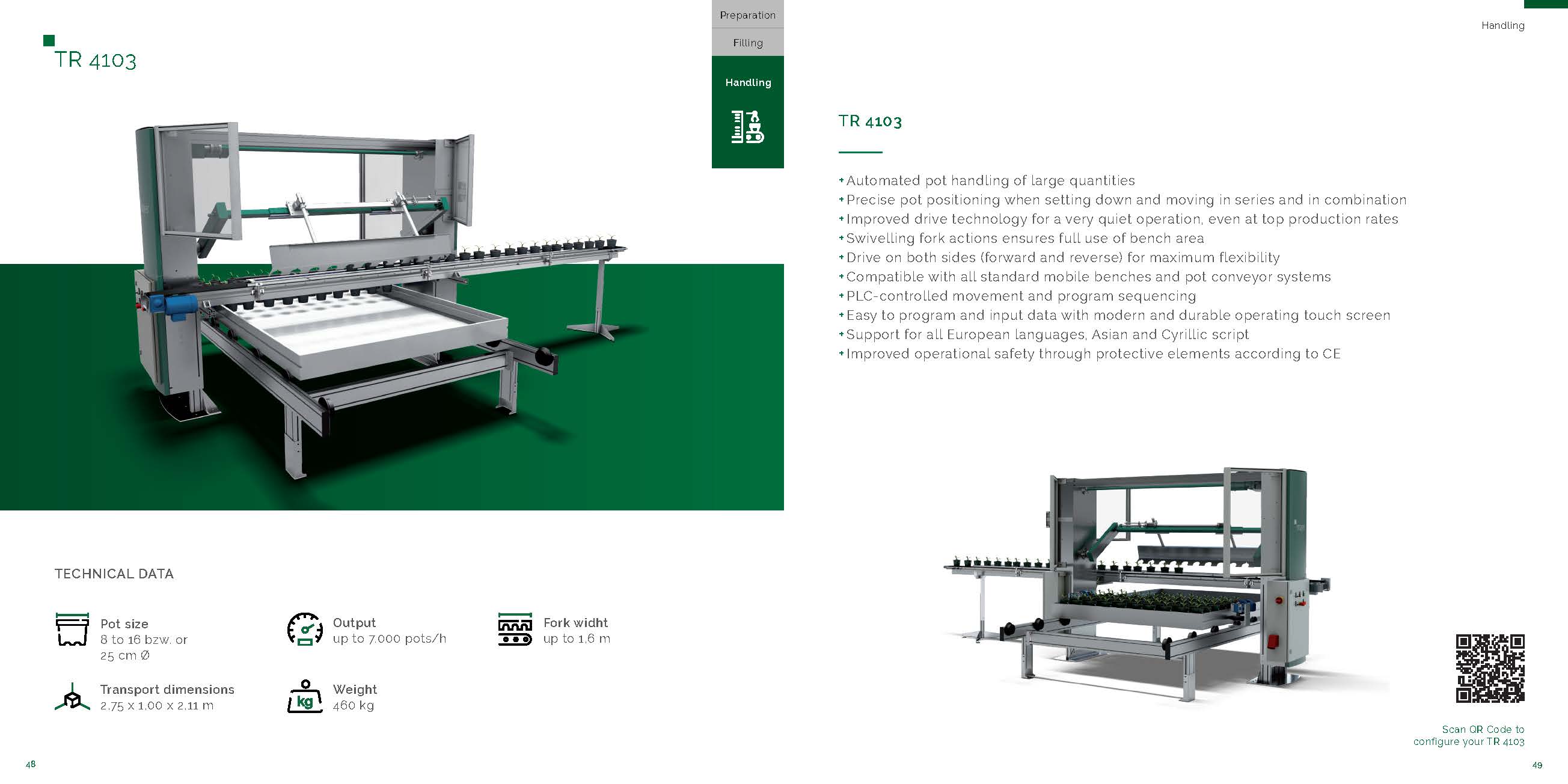 高效處理大量盆栽對于花卉的大批量種植至關(guān)重要。在最新的發(fā)展階段,Mayer TR 4103跳移機(jī)將花盆填充和轉(zhuǎn)移的整個過程提升到了一個新的自動化水平。