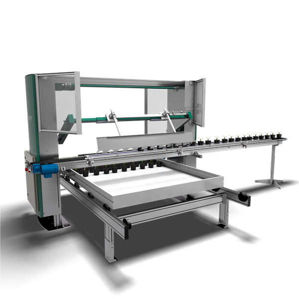 合理性和準(zhǔn)確性在這里同時得到保證:TR 4103通過優(yōu)化的運(yùn)動順序(PLC控制)的平穩(wěn)運(yùn)行,在花盆放下并轉(zhuǎn)移到移動工作臺,拖車或傳送帶時,展現(xiàn)了其精確組織的工作力。作為自動的“分配中心”,它顯著提高了加工潛力,與強(qiáng)大的上盆機(jī)的工作量完全匹配。